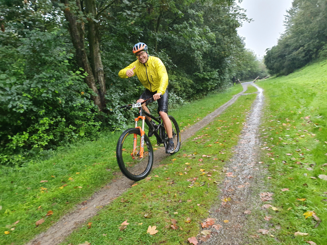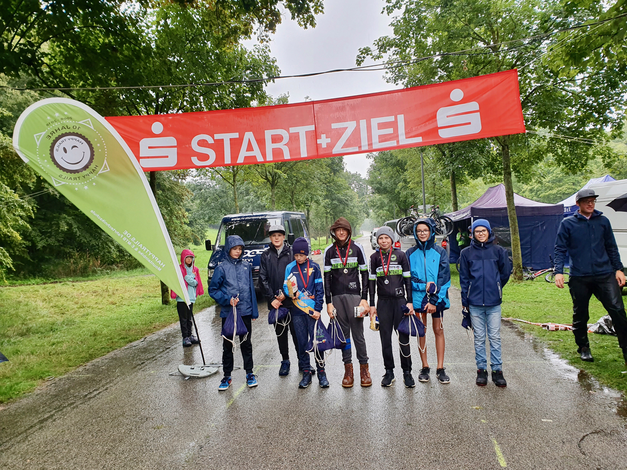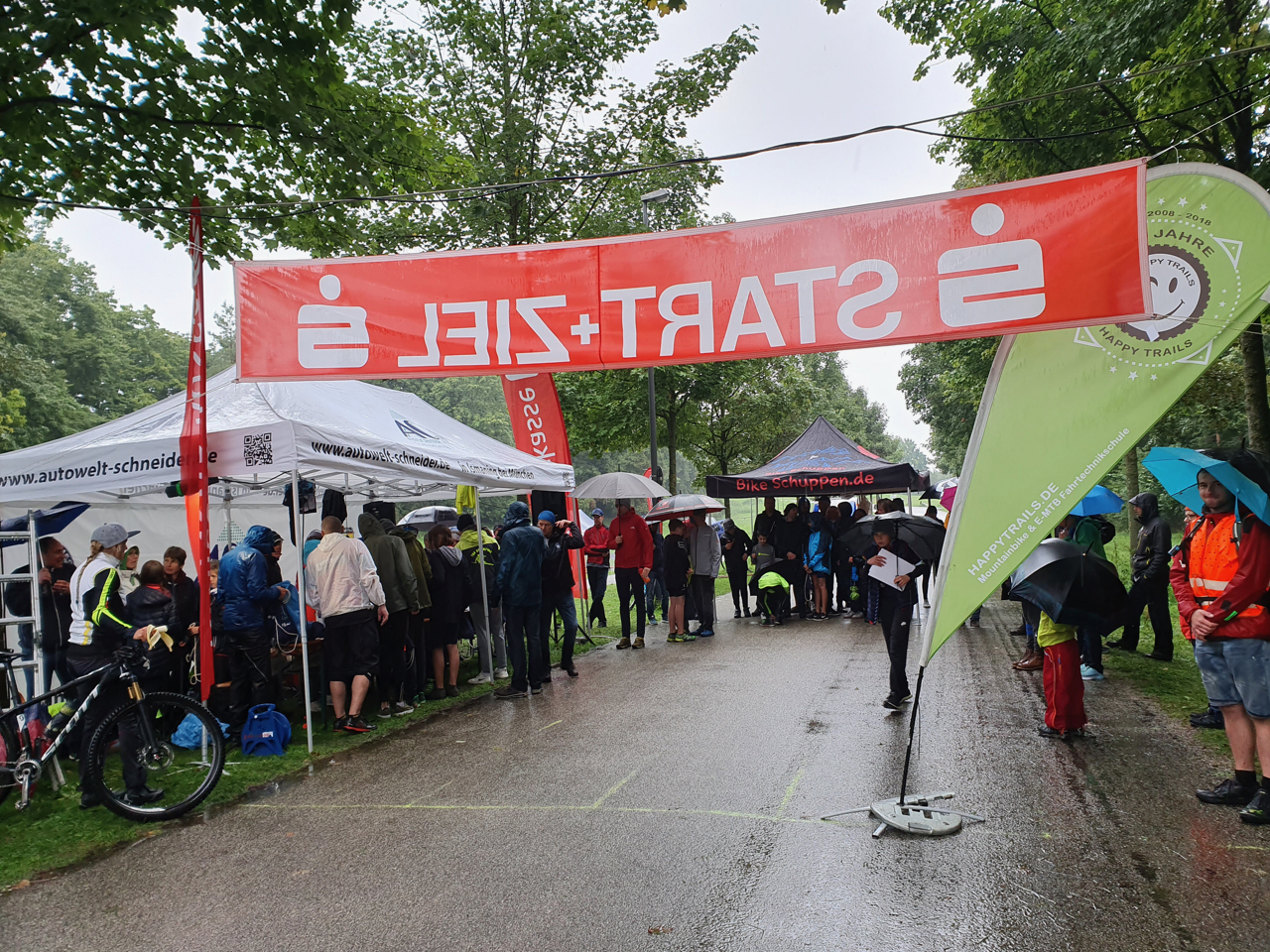 Das nasse Wetter hielt jedoch die gemeldeten Kinder und Jugendliche nicht davon ab, ihre Startnummern abzuholen und an den Start zu rollen – insgesamt hatten wir 120 Kinder und Jugendliche in den verschiedenen Altersklassen. Es gab sogar noch einige Kurzentschlossene, die am Tag selbst noch nachmeldeten. Im Anschluss durften auch noch die Erwachsenen ihr Können unter Beweis stellen. Wir vom MTB-Club Münchens fuhren wie schon im Vorjahr um die Vereinsmeisterschaft. Spätestens jetzt war die komplette Strecke unter Wasser, Schlauchboot und Schwimmflügel wären die bessere Ausstattung gewesen. Die Erwachsenen zeigten auch eine nicht ganz so gute Startermoral 😉 so war das Feld überschaubar, aber die anwesenden schienen viel Spaß zu haben. Ganz tapfer haben sich die ganz kleinen im Laufradrennen geschlagen, hier hat es doch schon mega geregnet.