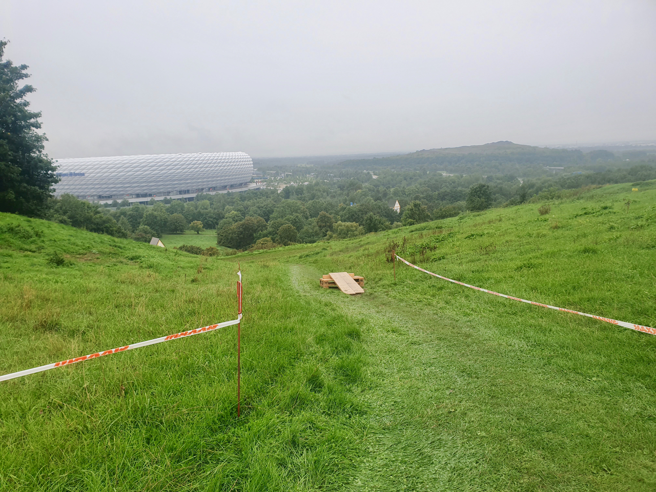 Besonders freut uns das vielseitige Lob für die interessanten Hindernisse auf der ansonsten eher unspektakulären Strecke auf befestigten Wegen: uns von der Stadt München untersagt, jegliche Wiesen oder Trails in die Streckenführung einzubauen. Das Team um Streckenchef Jörg hat sich einiges einfallen lassen um aus Paletten, Autoreifen, Baumstämmen und Brettern kleine Sprünge, Schikanen oder ein Kurvenlabyrinth zu bauen.